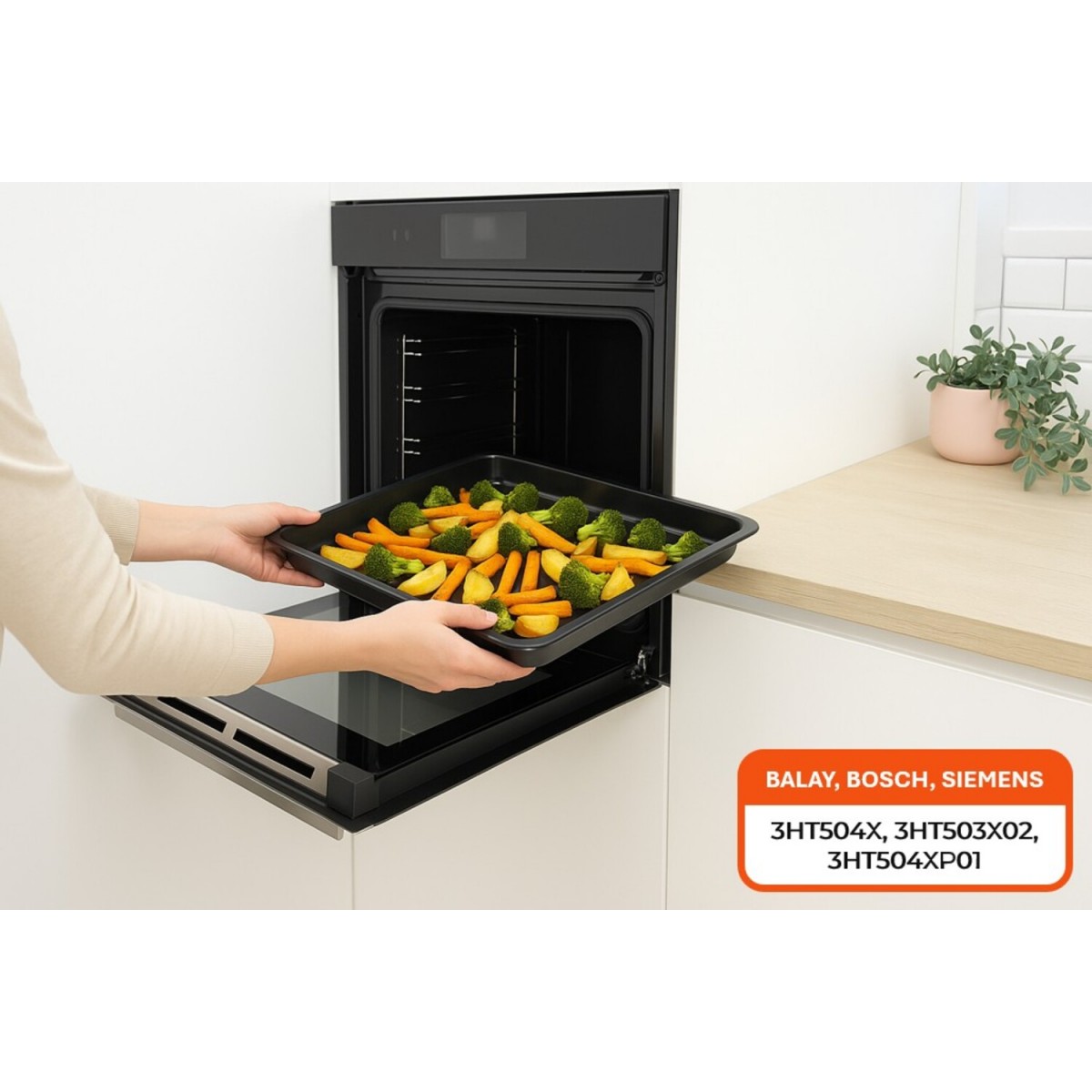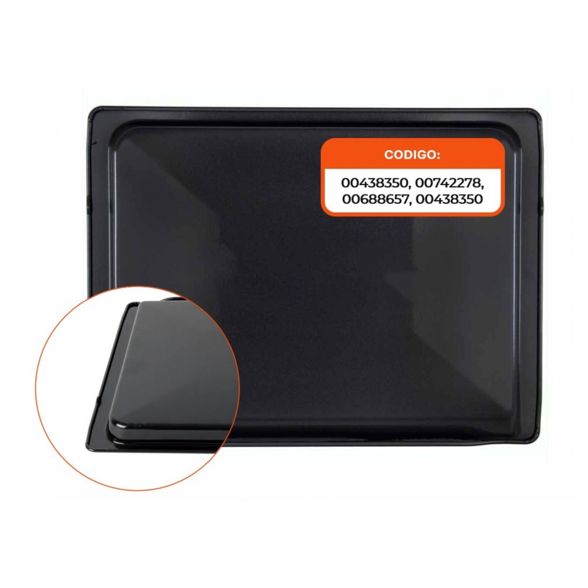 Bandeja para horno. Medidas: 464x345x29 mm. Marcas compatibles: Balay, Bosch, Simens. Adaptabilidad Modelos: balay 3HT504X, 3HT503X02, 3HT504XP01. Código Original Fabricante: 00438350, 00742278, 00688657, 00438350.