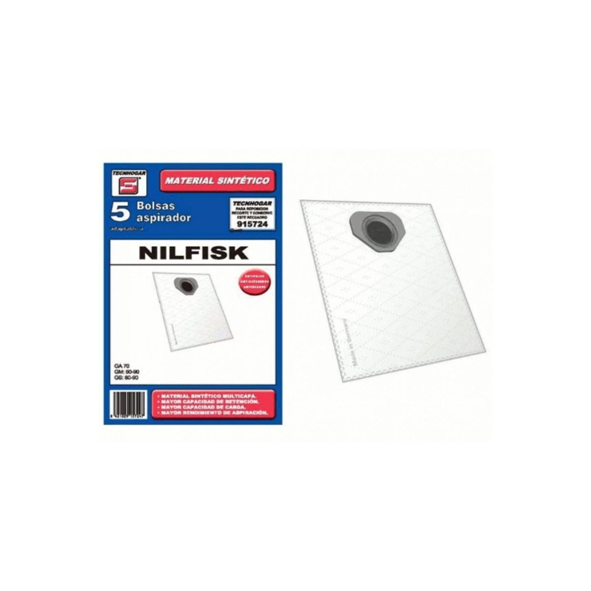 Saco as. sintético multimarca 5u. C.O. 915724 NILFISK. NILFISK GA 70 GM 80 GM 80 BLACK GM 90 GS 80 GS 90