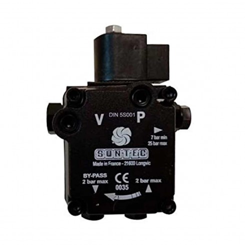 Bomba para quemadores de gasóleo Suntec. Modelo: SUNTEC Modelo: AS47C 1538 6P0500 = 1582 Rotación: izquierda. Salida: izquierda. Incluye: electroválvula. Esta bomba sirve para alimentar el gasóleo desde el deposito de combustible hasta el quemador de la caldera. Adaptable para quemadores: Domusa, Acv , Baltur , Bentone , Chappee , Francia , Hansa , Hofmat , Ideal Standard , Intercal , Joannes , Ray , Sicma, entre otros.