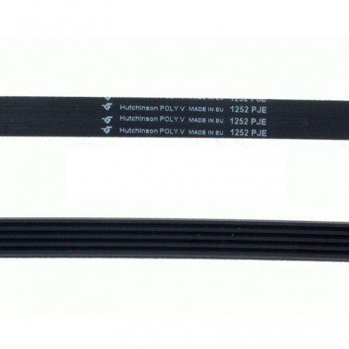 Correa de transmisión de 1252 mm de desarrollo. Longitud: 1252mm Ranura: tipo J Código: 55500000160 Correa en V Dientes: 5 Canales: 4 Fabricante: Hutchinson Elasticidad: PJE Adaptabilidad lavadoras de las marcas Balay, Bosch, Lynx, Siemens, Arçelik, Beko, Indesit, Ariston, entre otras muchas marcas. Puedes ver más Correas para Lavadoras