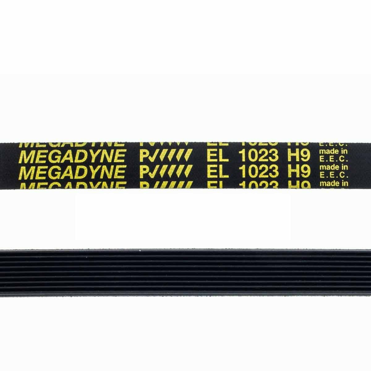 Correa de transmisión de 1023 mm de desarrollo, encargada de transmitir el movimiento del motor al tambor de la lavadora.