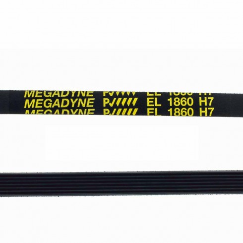 Correa de transmisión de 1860 mm de desarrollo, encargada de transmitir el movimiento del motor al tambor de la secadora. Longitud: 1860 mm Ranura: tipo H Dientes: 7 Canales: 6 Elasticidad: EL Fabricante: Megadyne. Va montada en secadoras de las marcas Ariston, Fagor, Aspes, Edesa, White Westinghouse, Indesit, Creda, Kneissel, Aquarus, Hotpoint, Brandt, entre otras muchas marcas