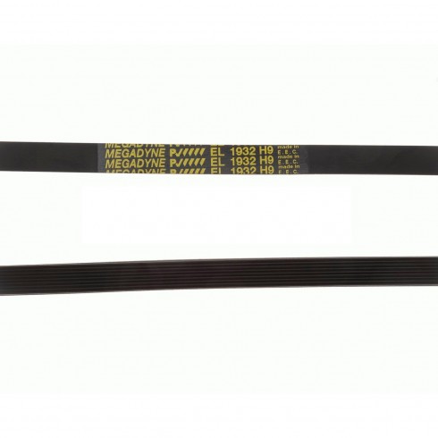 Correa de transmisión de 1932 mm de desarrollo. Longitud: 1932mm Ranura: tipo H Calidad: A1 Elasticidad: EL Correa en V Dientes:9 Canales: 8 Fabricante: Megadyne Va montada en secadoras de las marcas Edesa, Aspes, Fagor, Vedette, Brandt, Domeos, Laden, Ignis, Whirlpool, Hotpoint, Ariston, Indesit, entre otras muchas marcas.