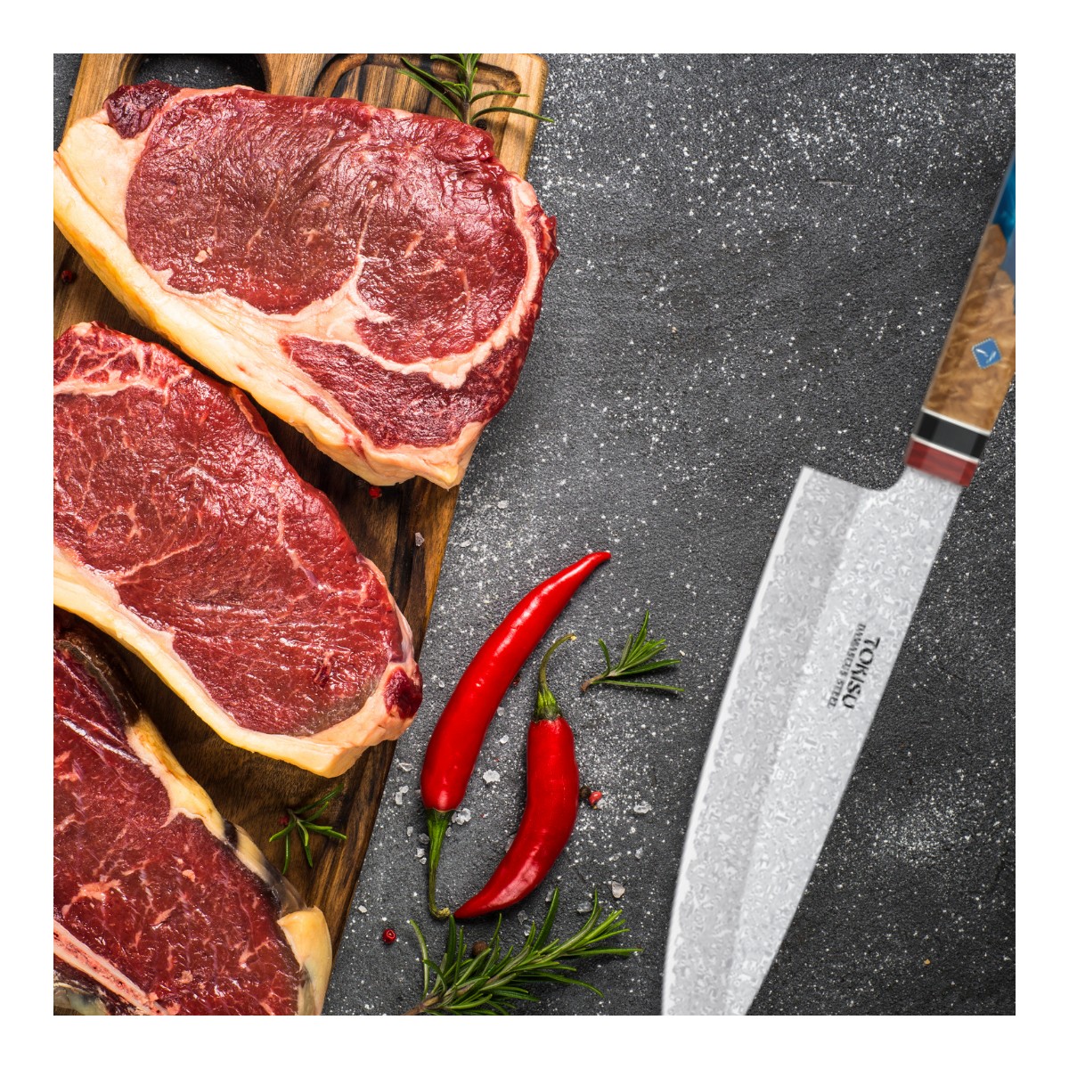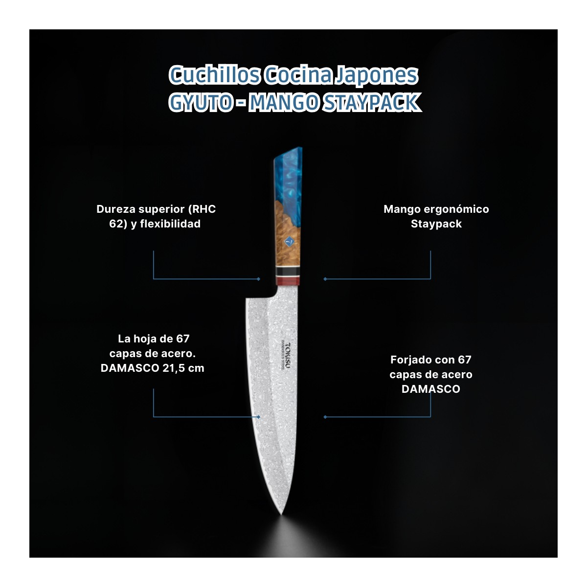 Cuchillo Cocina Profesional TOKYSU - Cuchillos Cocina Japones GYUTO de Acero DAMASCO 67 capas 21,5