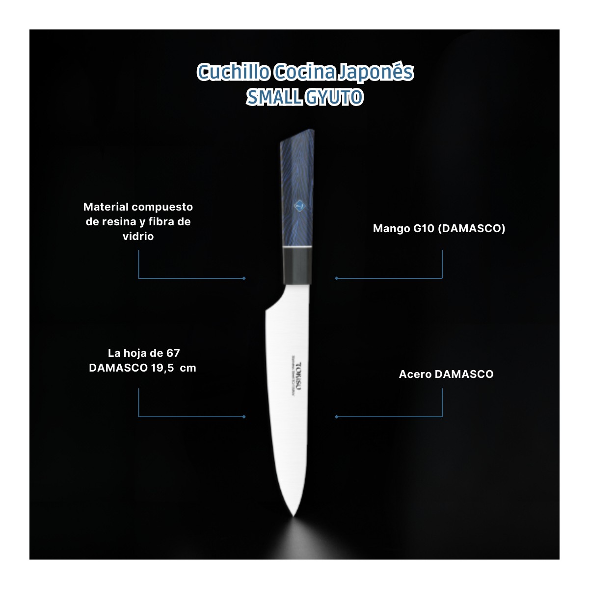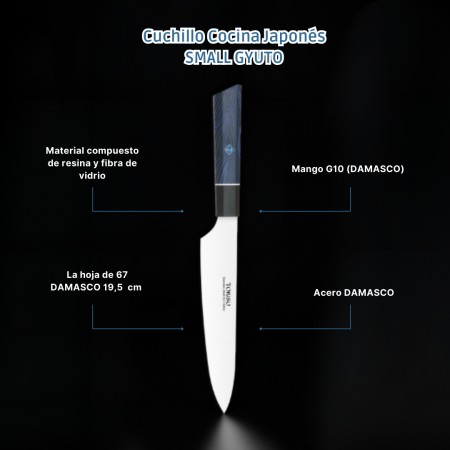 Cuchillo Cocina Profesional TOKYSU - Cuchillos Cocina Japones SMALL GYUTO de Acero Inoxidable de 67 capas 19,5 cm- Mango G10