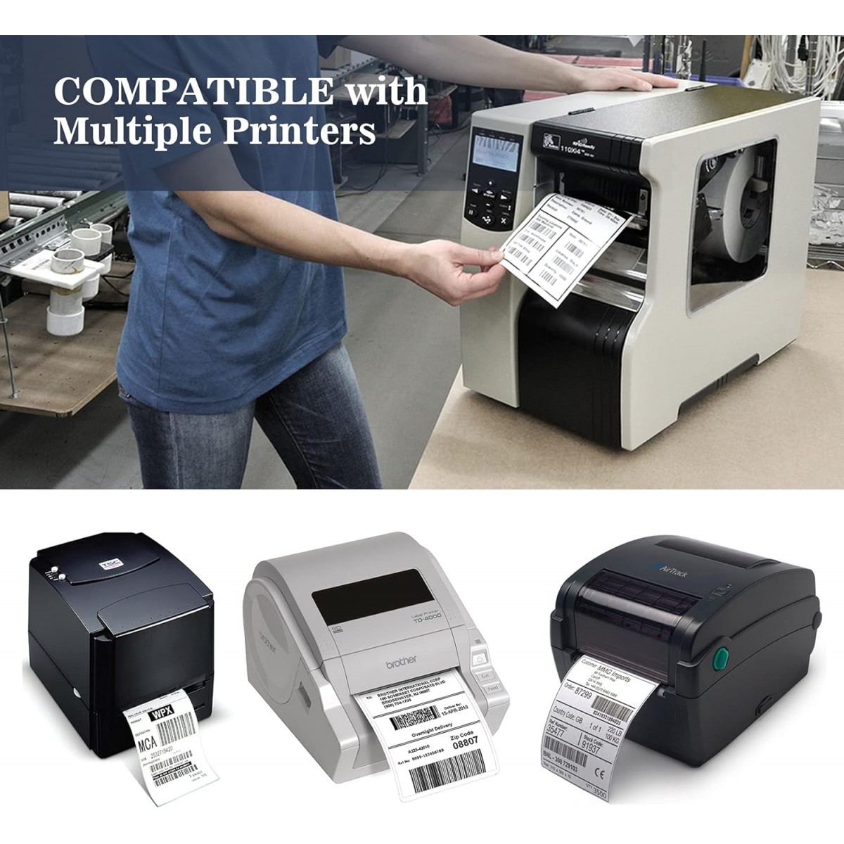 Dimensiones: 100 x 150 mm, 2 rollos de 400 etiquetas cada uno. Nota: Este producto no es compatible con impresoras que requieren marcas negras, como por ejemplo, las de la marca DYMO. Calidad confiable: el papel térmico para etiquetas es resistente a grasa, agua y alcohol, asegurando un resultado de impresión claro y definido, ideal para códigos de barras legibles. Adhesivo potente: las etiquetas autoadhesivas cuentan con una adhesión fuerte, fabricadas con materiales de alta calidad, perfectas para adherirse a cajas de cartón corrugado, paquetes y sobres.