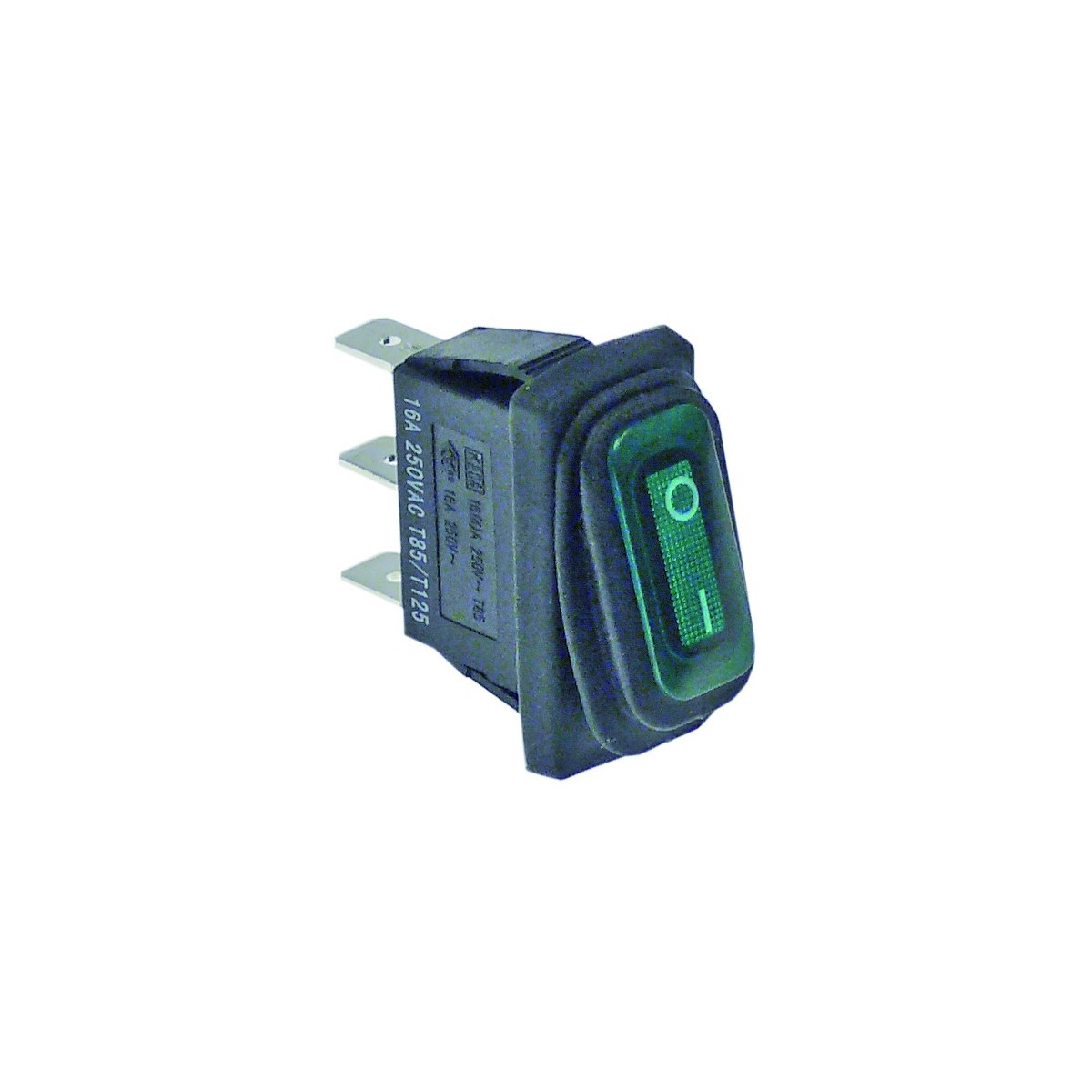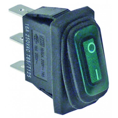 Interruptor basculante medida de montaje rectangular verde 1NO 230V 16A iluminado 0-I