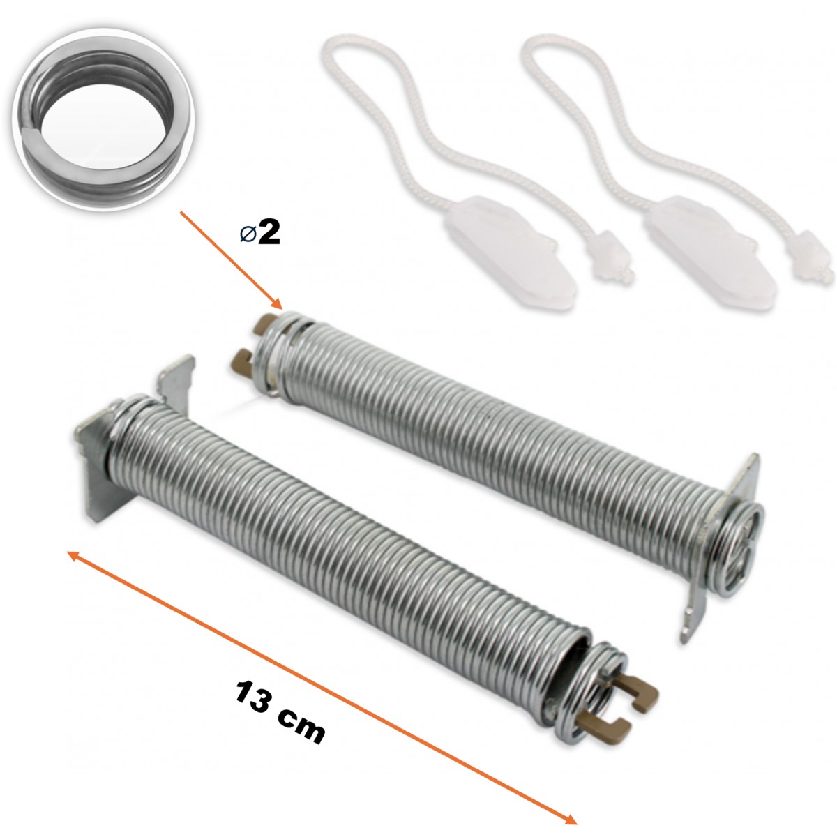 Incluye 2 muelles beige (130 mm x 20 mm) y 2 cuerdas (310 mm).