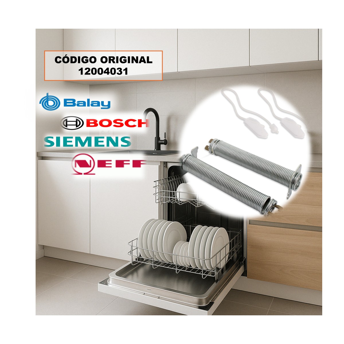 Kit de reparación para puerta de lavavajillas compatible con Bosch, Balay, Siemens, Neff y Constructa (ref. 12004031).