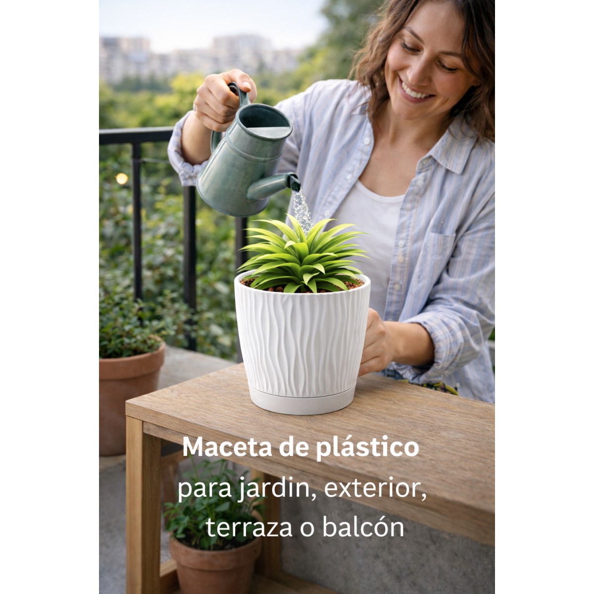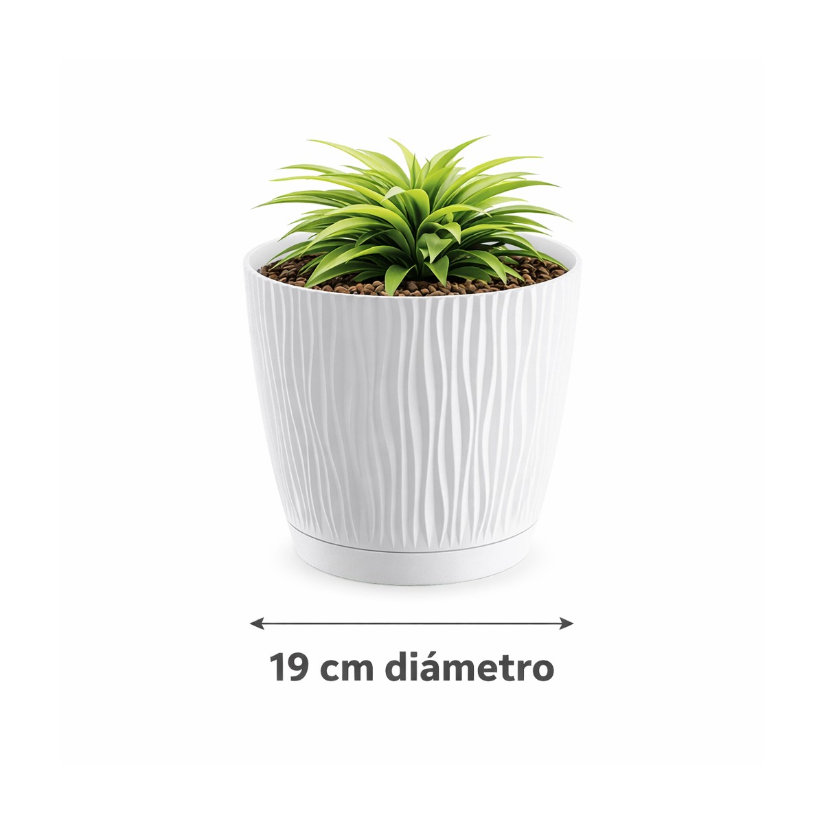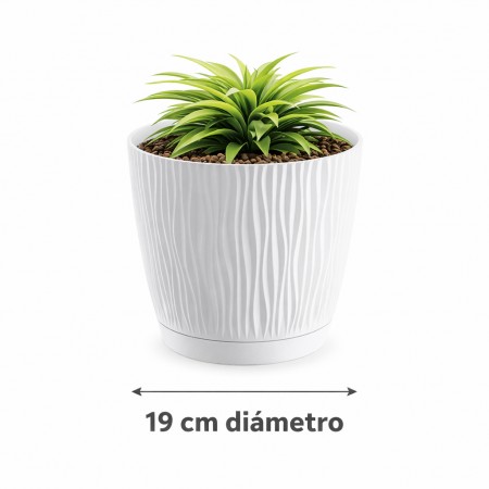 Maceta de plástico para jardín, exterior, terraza o balcón es una opción práctica y decorativa para el cultivo de plantas en distintos espacios. Fabricada en plástico resistente, este macetero diseñada para ofrecer una buena durabilidad y soportar el uso habitual en exteriores. Su acabado en color blanco aporta un aspecto limpio y luminoso que se integra fácilmente en cualquier entorno. Con un diámetro de 19 cm, es ideal para plantas pequeñas, flores o plantas decorativas. Su diseño oasis, con relieve suave y moderno, añade un toque estético sin renunciar a la funcionalidad. Ligera y fácil de manejar, es adecuada tanto para uso en exterior como en interior cubierto.