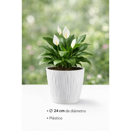 Maceta de plástico para jardín, terraza o balcón | Color: Blanco | Diámetro: 24 cm | Diseño oasis