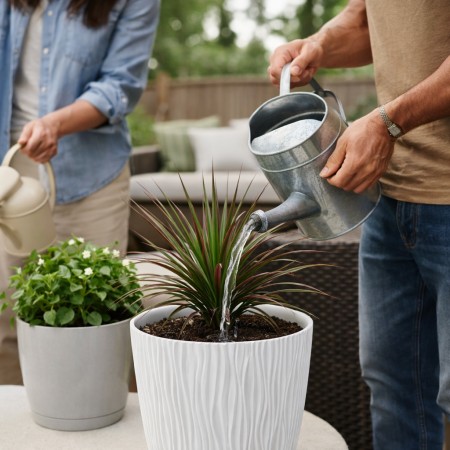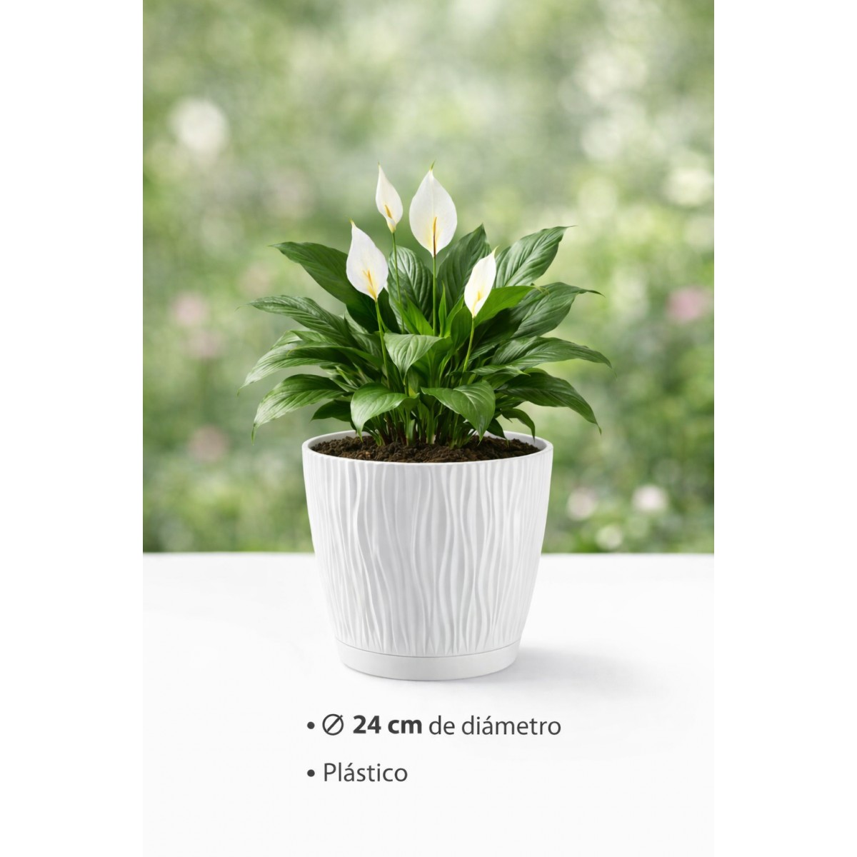 Maceta de plástico para jardín, exterior, terraza o balcón es una opción práctica y decorativa para el cultivo de plantas en distintos espacios. Fabricada en plástico resistente, este macetero diseñada para ofrecer una buena durabilidad y soportar el uso habitual en exteriores. Su acabado en color blanco aporta un aspecto limpio y luminoso que se integra fácilmente en cualquier entorno. Con un diámetro de 24 cm, es ideal para plantas pequeñas, flores o plantas decorativas. Su diseño oasis, con relieve suave y moderno, añade un toque estético sin renunciar a la funcionalidad. Ligera y fácil de manejar, es adecuada tanto para uso en exterior como en interior cubierto.
