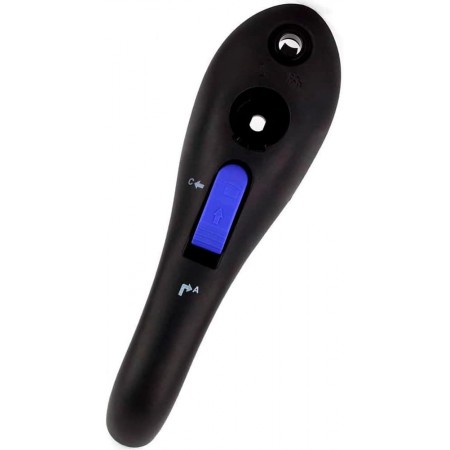 Diseño resistente en color negro con botón en color azul.