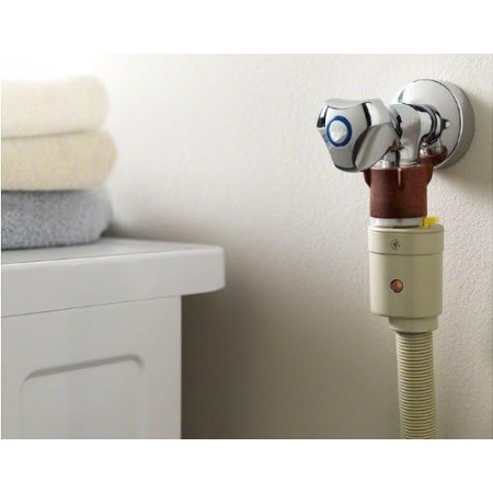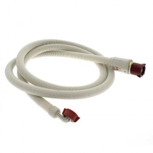 Manguera de seguridad para lavadoras y lavavajillas con certificación VDE. Longitud de 4 metros, soporta hasta 90°C y 10 bar de presión.