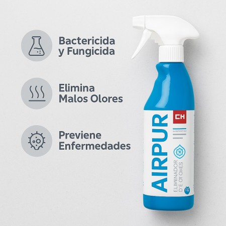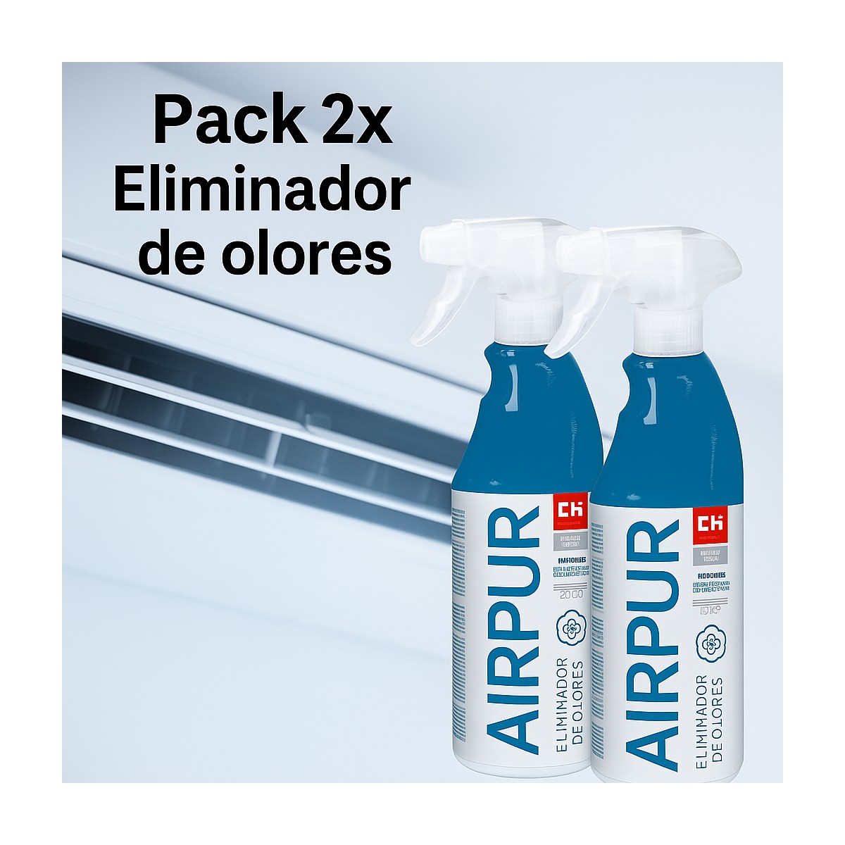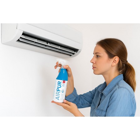 Pack de 2 unidades de AIRPUR, un tratamiento profesional eficaz para eliminar malos olores en sistemas de conducción de aire. Cada envase contiene 750 ml y actúa como bactericida y fungicida, evitando la proliferación de bacterias, hongos y microorganismos, principales causantes de enfermedades y contagios. Ideal para su uso en sistemas de climatización, ventilación y aire acondicionado en vehículos, hogares u oficinas. Su aplicación es sencilla: pulverizar directamente en las zonas de entrada y salida del aire con el sistema apagado, dejar actuar unos minutos y encender de nuevo. Se recomienda un uso regular para mantener el sistema limpio y libre de olores.