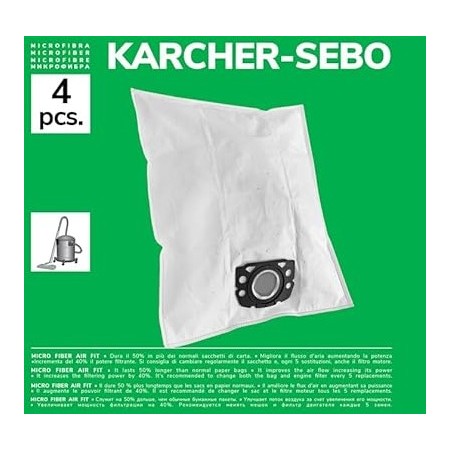 Pack de 4 Bolsas de Microfibra Compatibles con Aspiradoras Kärcher WD4, WD5, WD6, WD5P, WD6P Premium, MV4, MV5, MV6 (Reemplazo
