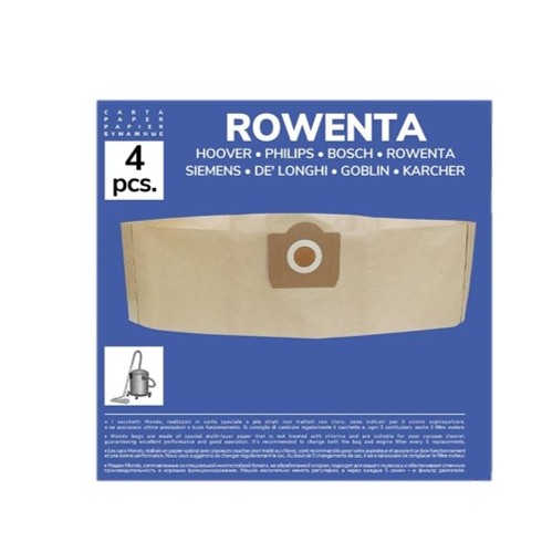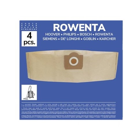 Pack de 4 Bolsas de Papel Compatibles con Aspiradoras Rowenta, Bully, Collecto, Kärcher WD3, WD3 Premium, WD2, MV3, MV2 | Alta