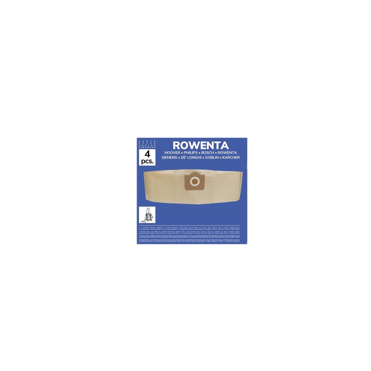 Juego de 4 bolsas de papel de alta calidad compatibles con aspiradoras Rowenta, Bully, Collecto y Kärcher. Fabricadas con papel resistente y duradero, garantizan una óptima capacidad de succión y un filtrado eficaz de polvo, arena y pequeñas partículas. Su diseño permite una sustitución rápida y sencilla, manteniendo la aspiradora en perfecto estado sin esfuerzo. Una solución económica y práctica para mantener siempre recambios disponibles y asegurar el mejor rendimiento del aspirador.