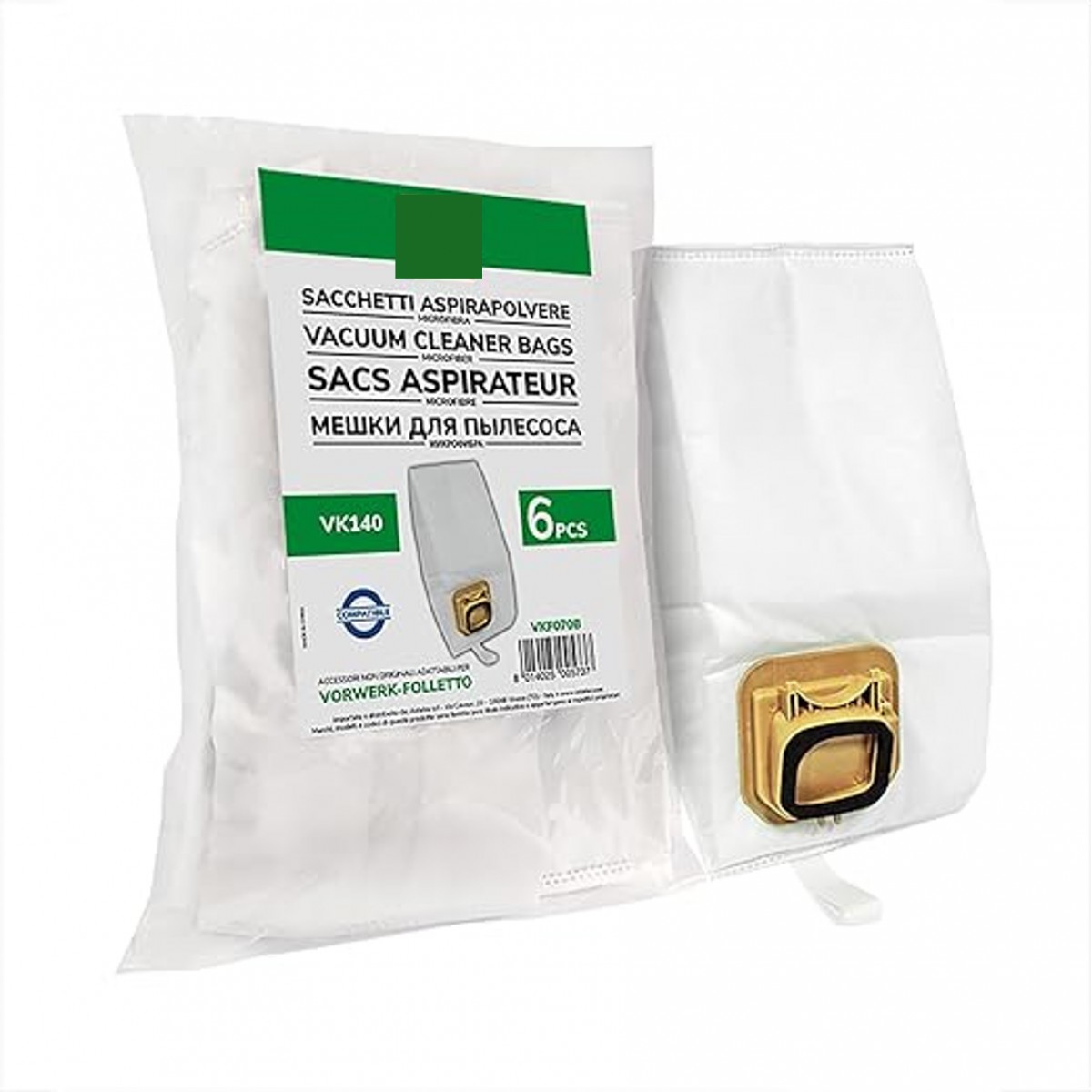 Set de 6 bolsas de microfibra de alta calidad compatibles con aspiradoras Folletto VK140. Fabricadas con material filtrante de gran eficiencia, proporcionan una filtración superior, reteniendo polvo, arena y pequeñas partículas para mantener un aire más limpio y proteger el motor del aspirador. Gracias a su diseño robusto y práctico, ofrecen una larga durabilidad y se sustituyen fácilmente, garantizando siempre un rendimiento óptimo del aspirador. Una opción económica, fiable y cómoda, ideal para tener recambios disponibles en todo momento.
