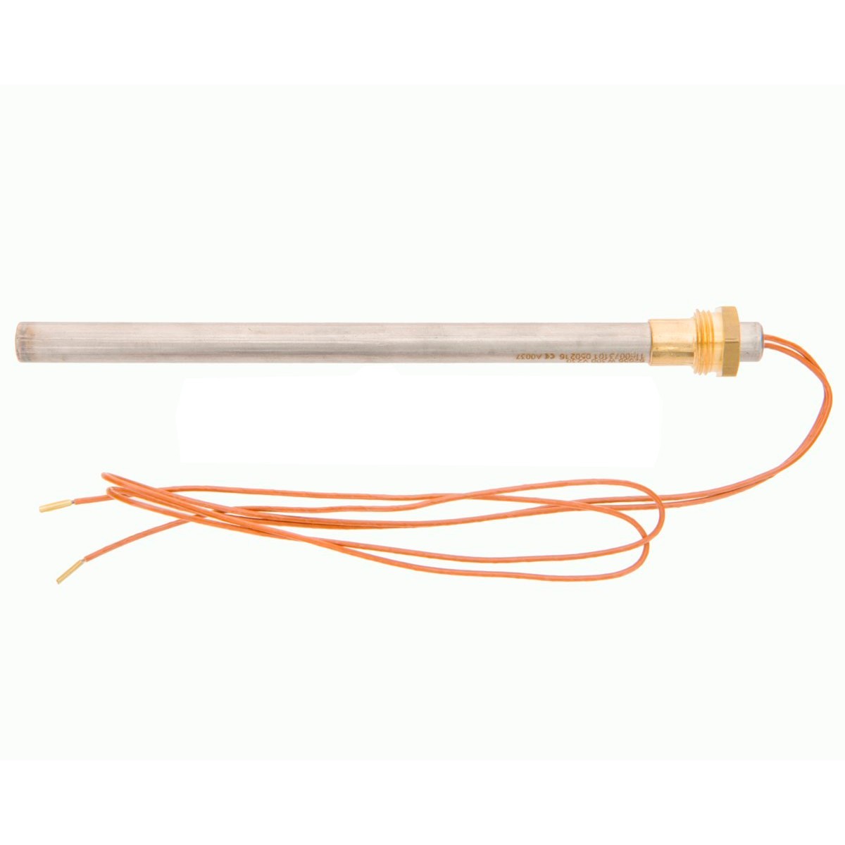 Resistencia estufa pellets BIOMASA. Rosca: 3/8" Potencia: 300W Diámetro: Ø 9 mm Longitud: 170 mm Longitud cable: 500 mm Tipo: ELD 60029 LAMINOX