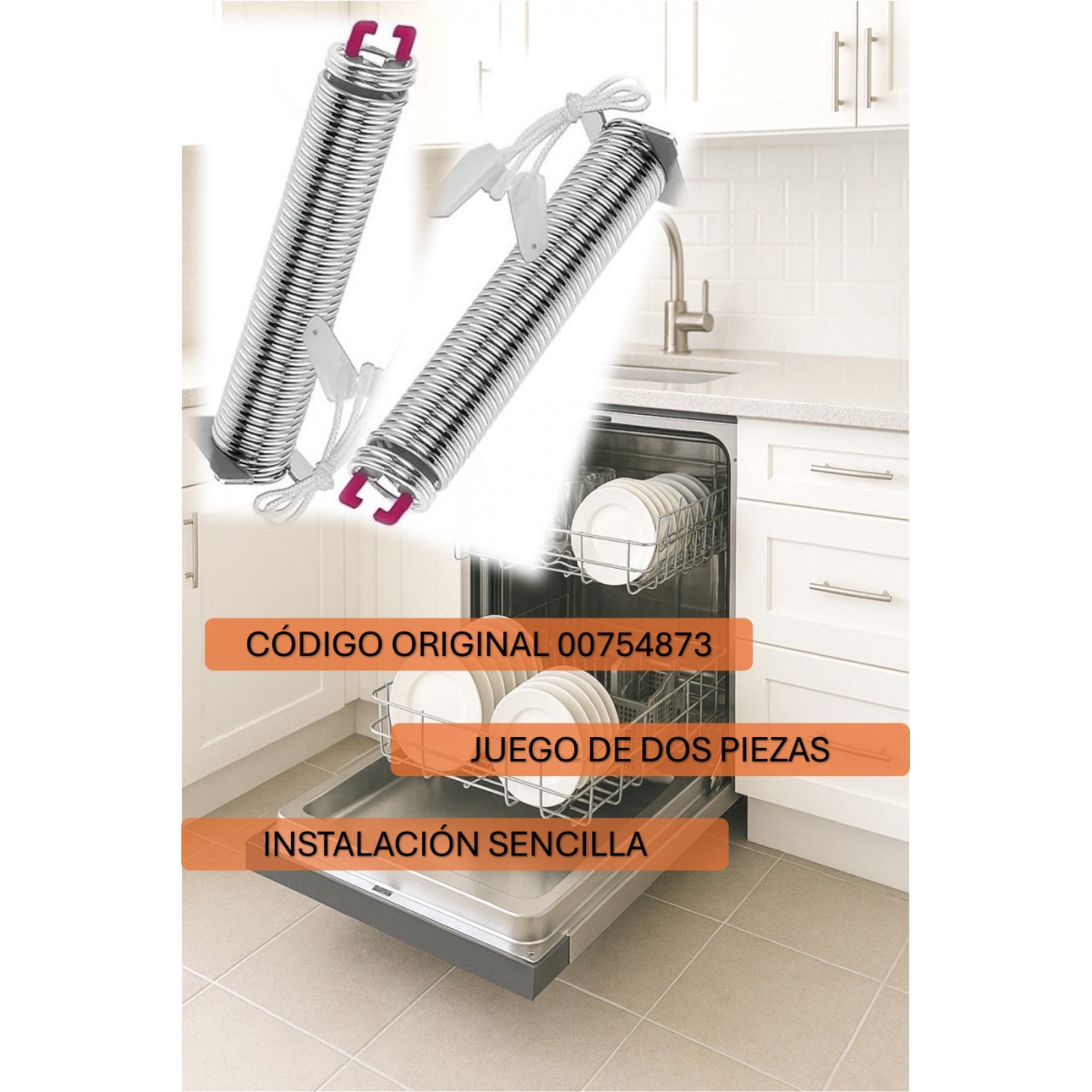 Incluye 2 muelles de acero y 2 tensores de cuerda. Compatibilidad: Apto para modelos Bosch, Balay, Constructa, Siemens, Neff y Küppersbusch (441344).