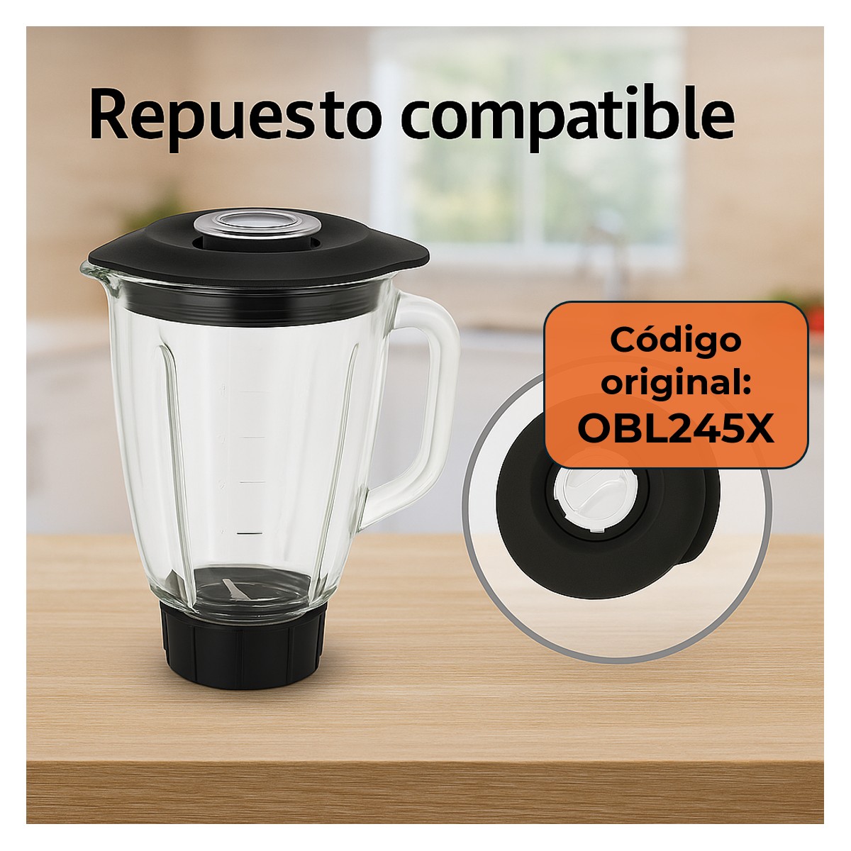 Tapa de repuesto diseñada especialmente para el modelo OBL245X. Este accesorio es ideal si tu tapa original se ha dañado o perdido. Incluye un tapón central desmontable que permite agregar ingredientes sin necesidad de retirar toda la tapa, ideal para preparaciones rápidas y sin interrupciones. Su diseño robusto y material resistente al calor la hacen apta para uso prolongado. Compatible únicamente con el modelo OBL245X (no universal). Verifica el modelo de tu batidora antes de comprar para asegurar compatibilidad.
