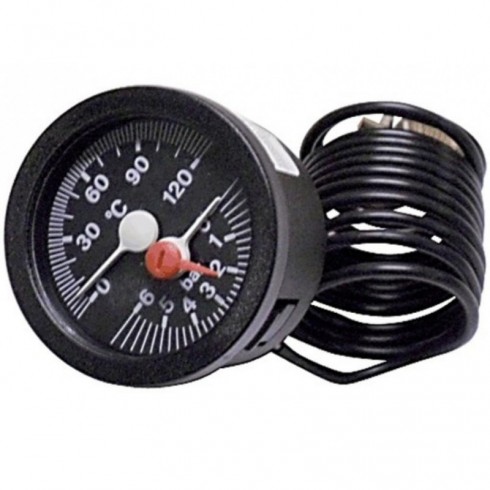 Termohigrómetro caldera. Adaptabilidad Caldera ROCA Modelos: GO 50/40 GTA, GO 50/25 GTA. Código Original Fabricante: 147037053. Temperatura Máxima: 120ºC Presión Máxima: 4 Bar