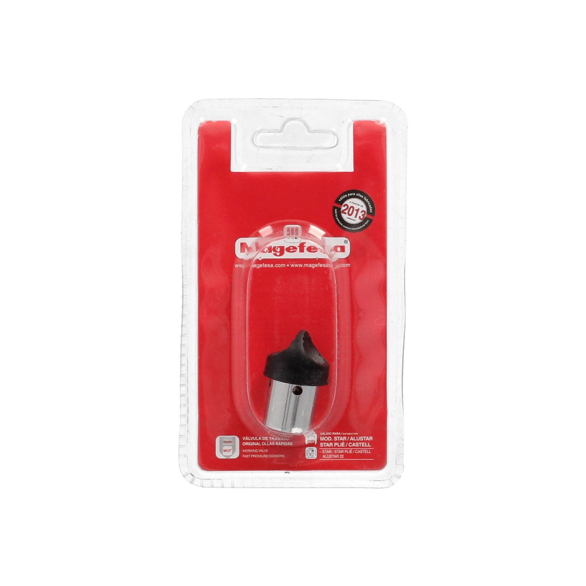 Repuesto original para ollas rápidas Magefesa STAR: Válvula de seguridad compatible con modelos desde 2013, garantizando un ajuste perfecto y máxima seguridad.