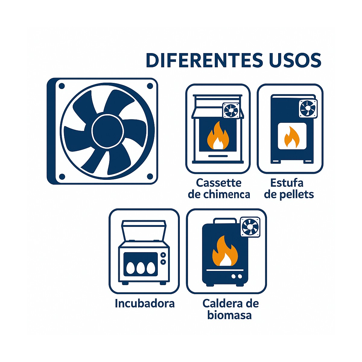 Ventilador axial universal para cassette de chimenea | Aspas metálicas alta temperatura | 120x120x38 mm